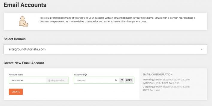 Once you’re ready, press Create at the bottom. That’s it, in a few seconds, your new email account will be created.